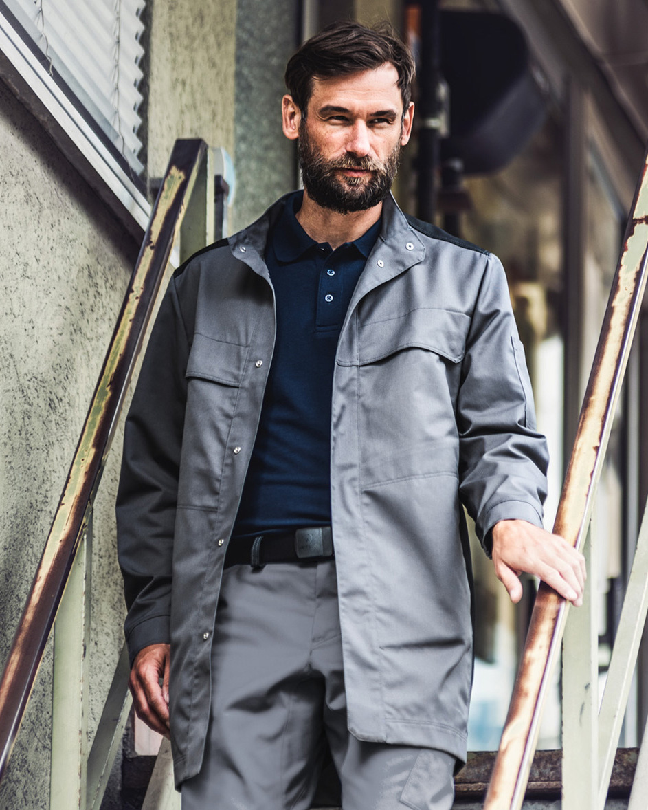 • 2 Brusttaschen mit Taschenpatten mit verdeckten Edelstahl-Druckknöpfen