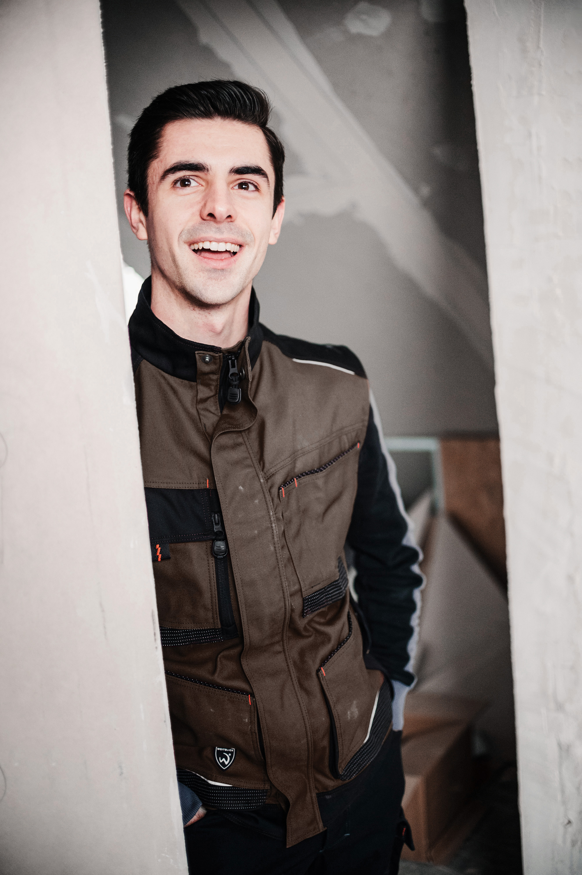- eine Brusttasche rechts mit Patte und verdeckten Edelstahl-Druckknöpfen, Napoleontasche mit Reißverschluss