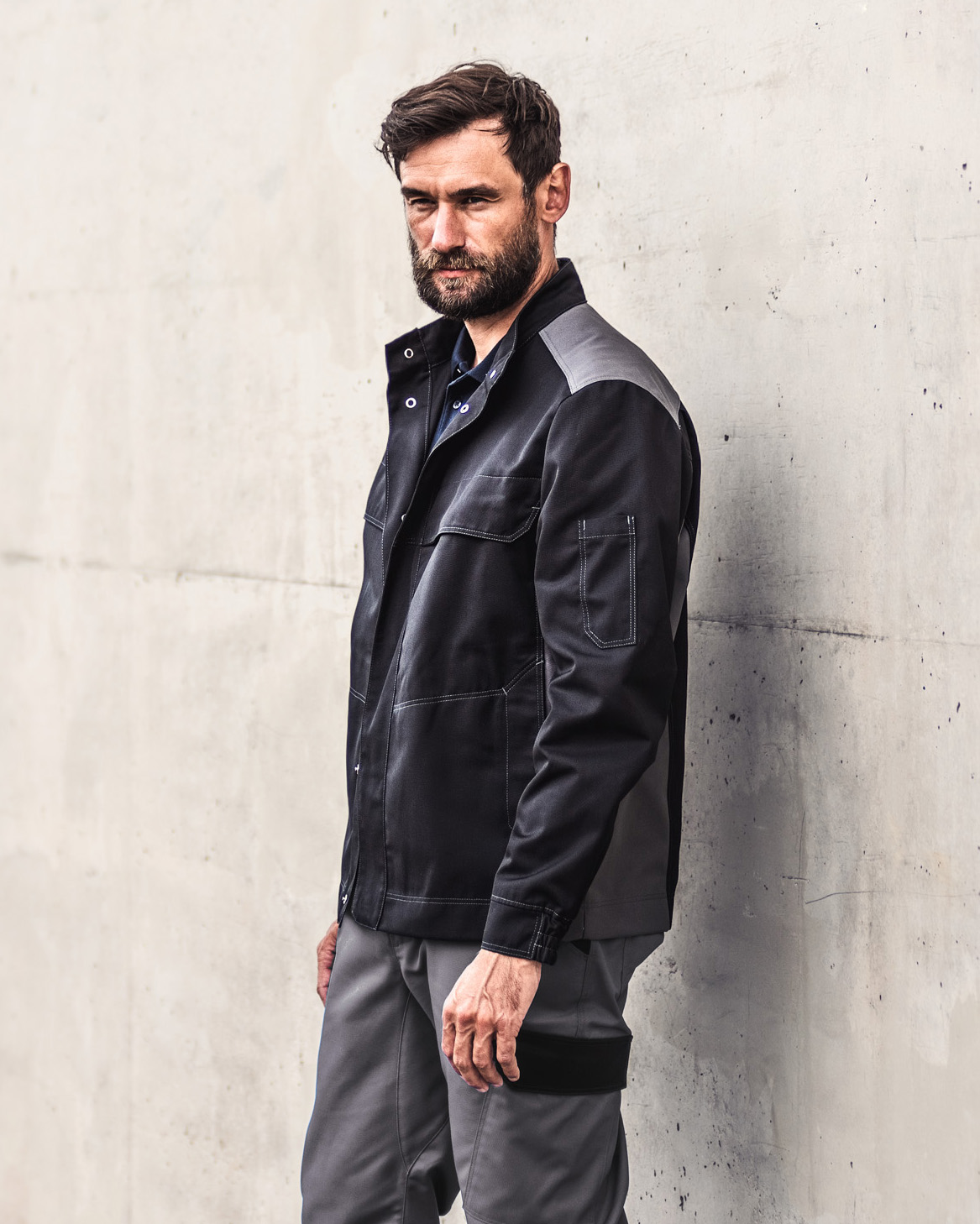 • 2 Brusttaschen mit Taschenpatten mit verdeckten Edelstahl-Druckknöpfen