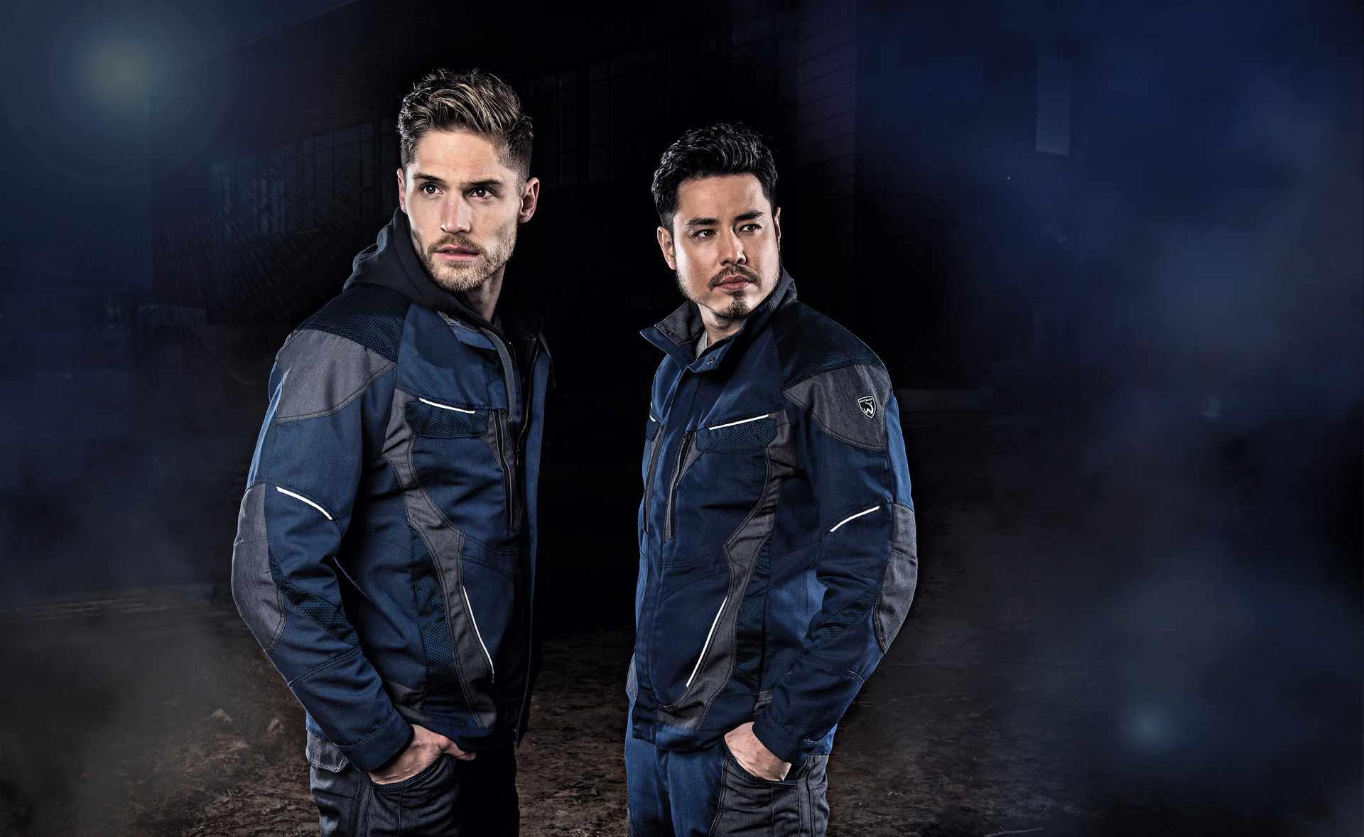 • zwei Napoleontaschen auf der Brust mit Reißverschluss, Zippergarage und Taschenblenden aus abriebfestem Polyamid; innenliegend mit Druckknopf