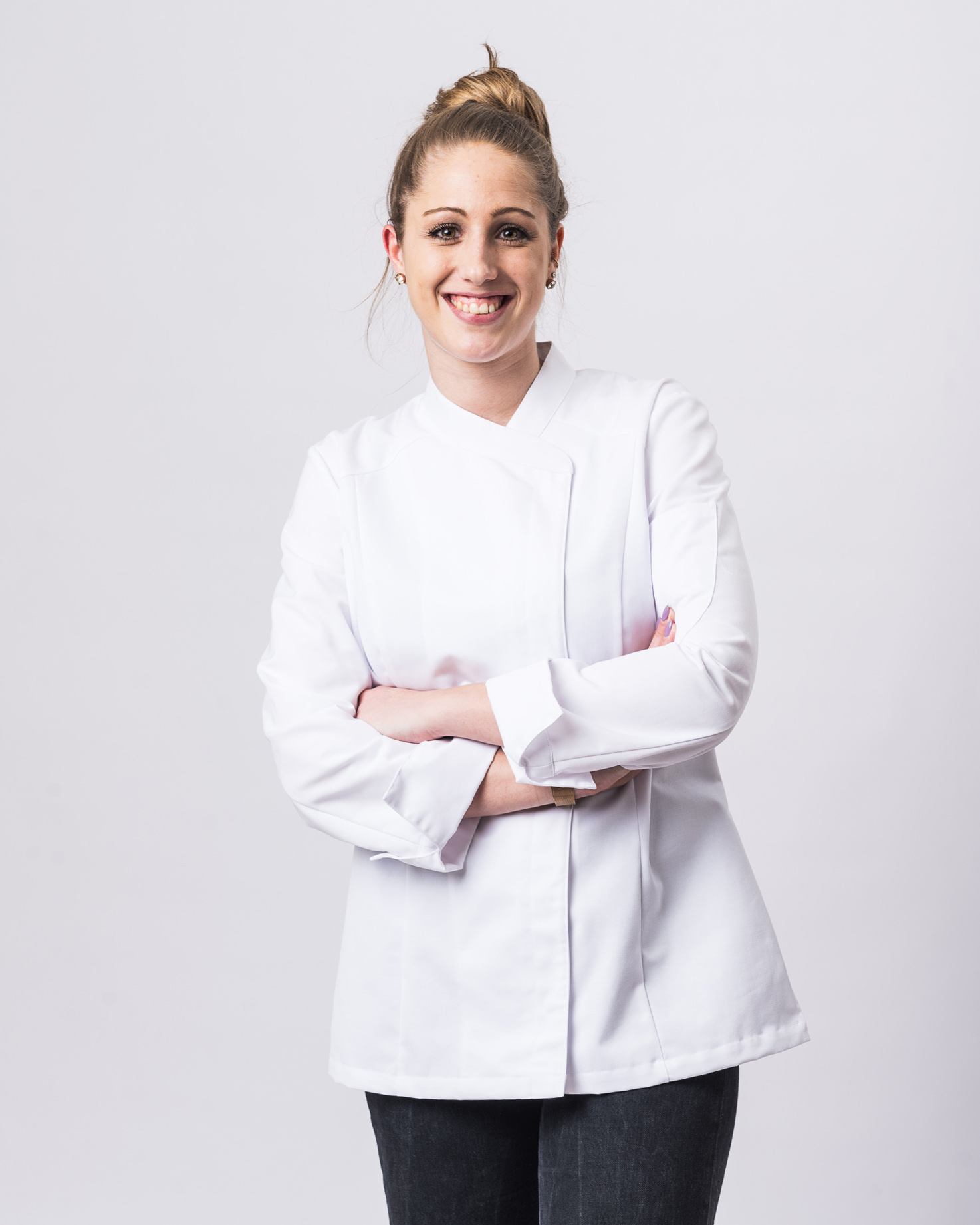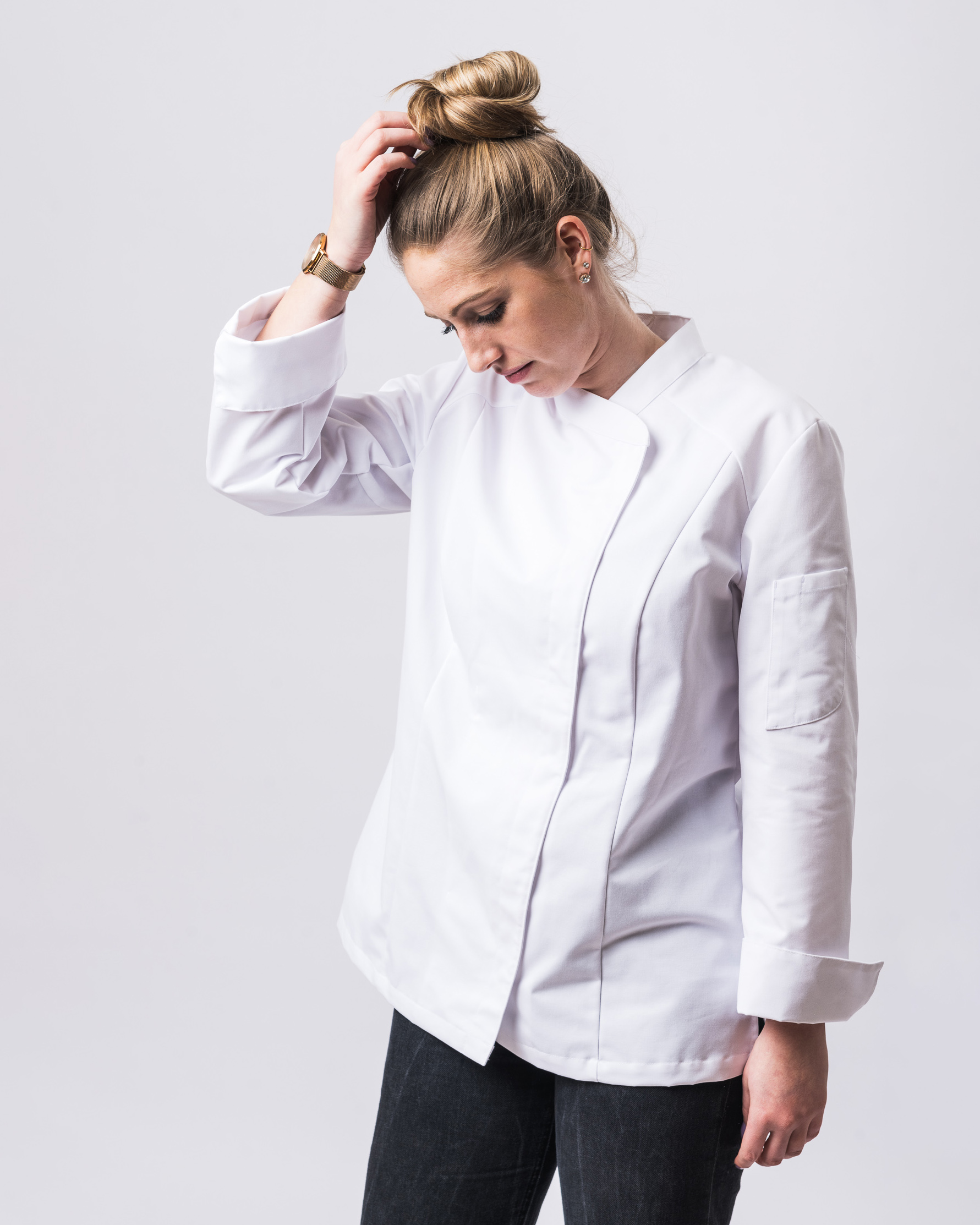 • asymmetrischer Kragen im klassischen Kochjacken Stil